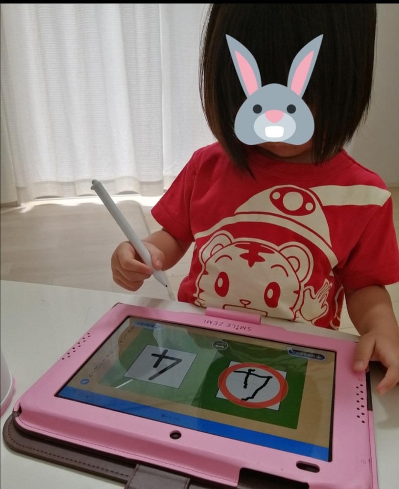 スマイルゼミ、年中のプログラムには足し算はまだ出てこないから算数+国語はドリルで先取り補強。